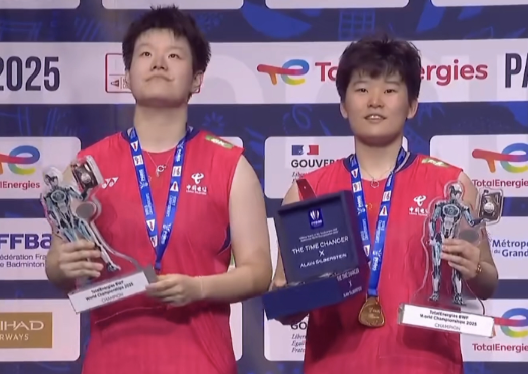 世界羽毛球锦标赛女双决赛,刘圣书/谭宁 21-14、20-22、21-17 陈康乐/蒂娜,刘圣书/谭宁夺得2025世界羽毛球锦标赛冠军。