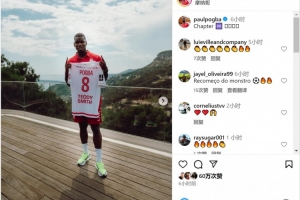 博格巴解禁复出,免签加盟法甲俱乐部摩纳哥,身披8号球衣。
